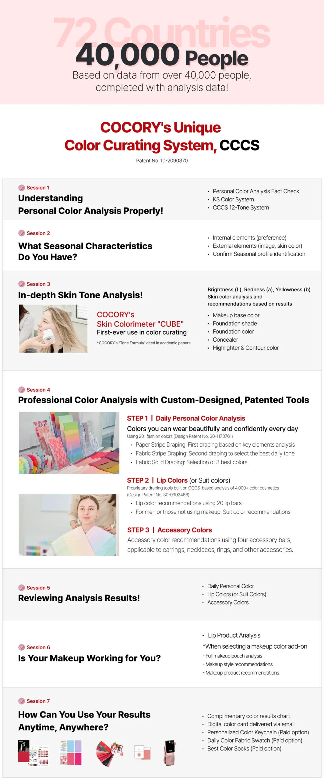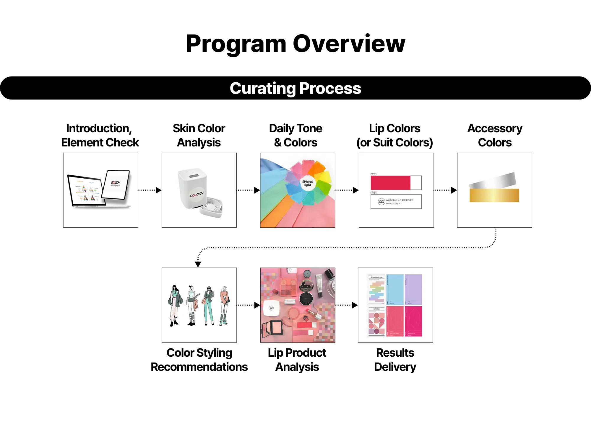🔹 Personal Makeup : A makeup service using the best color combinations for your skin tone and personal image, based on Cocory Cube analysis.
