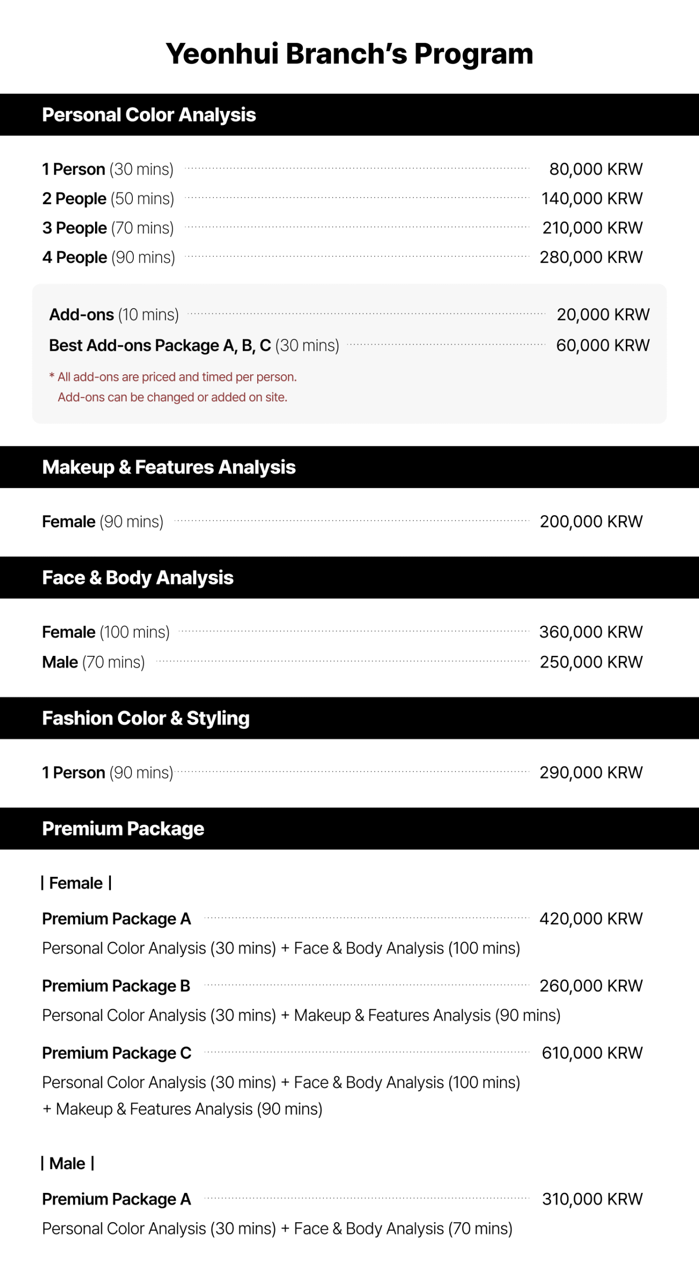 🔹Fashion Color & Styling : An extended version of Personal Color that integrates your visual identity and balance image to provide a comprehensive style and color analysis.