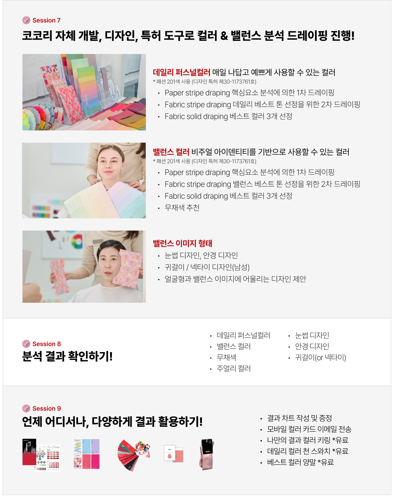 🔹 패션컬러&스타일링 : 기존 데일리 퍼스널 컬러를 확장하여 고객님의 전체적인 비주얼 아이덴티티(Visual Identity), 밸런스 이미지를 통합적으로 진단하고 최적의 컬러와 스타일을 제안합니다.