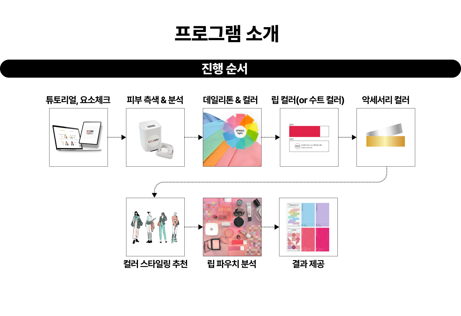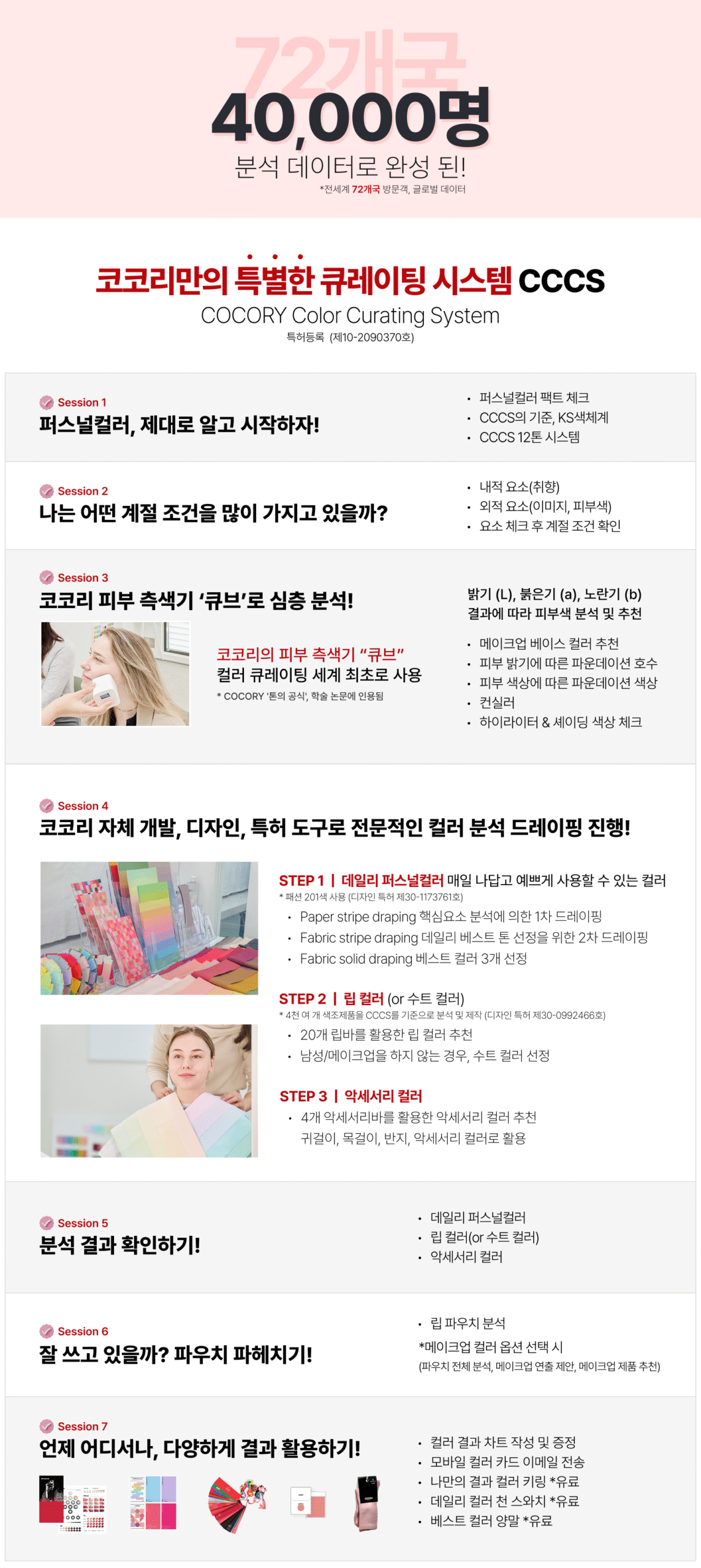 🔹퍼스널 메이크업 : 코코리 큐브로 피부 톤을 진단 후, 개인의 스킨색과 이미지에 어울리는 메이크업 컬러를 찾아 전문적인 메이크업 서비스를 제공합니다.