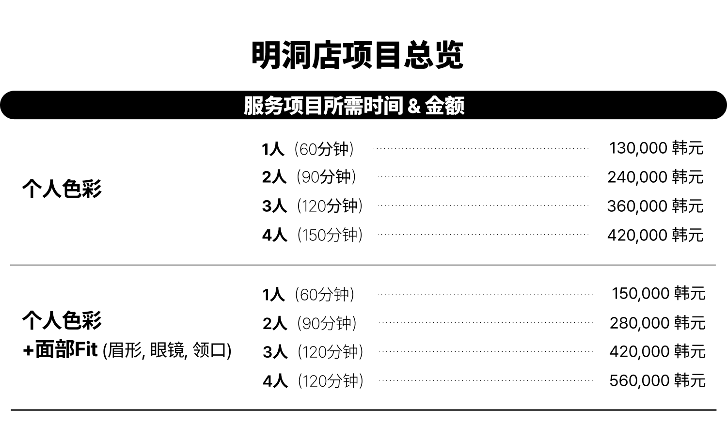 🔹 Personal Color + Personal Balance 套餐(延禧店):基于面部特征与体型,提供肤色与平衡设计的详细分析。